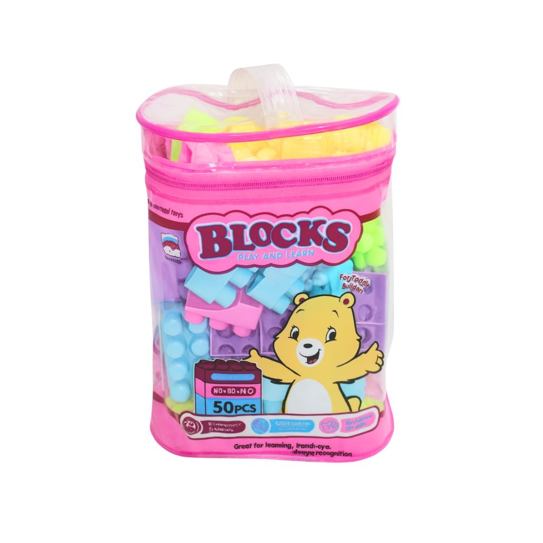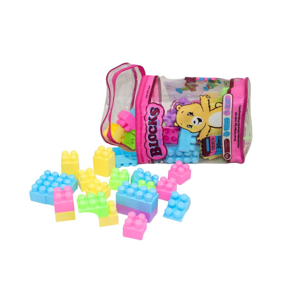 Crafted from durable plastic and made in China, these blocks allow kids to build towers, shapes, and imaginative structures. The soft pink color theme adds a charming touch, making it an appealing choice for little builders.