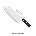 • Chinese Chef Knife (Made in China) – Measuring 27cm (Length) and 8cm (Width), this knife is perfect for slicing meat, vegetables, and herbs with precision.