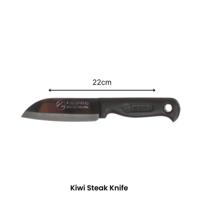 • Kiwi Steak Knife (Made in Thailand) – With a 21cm Length and 3cm Width, it’s ideal for cutting steaks, fruits, and other delicate foods effortlessly.