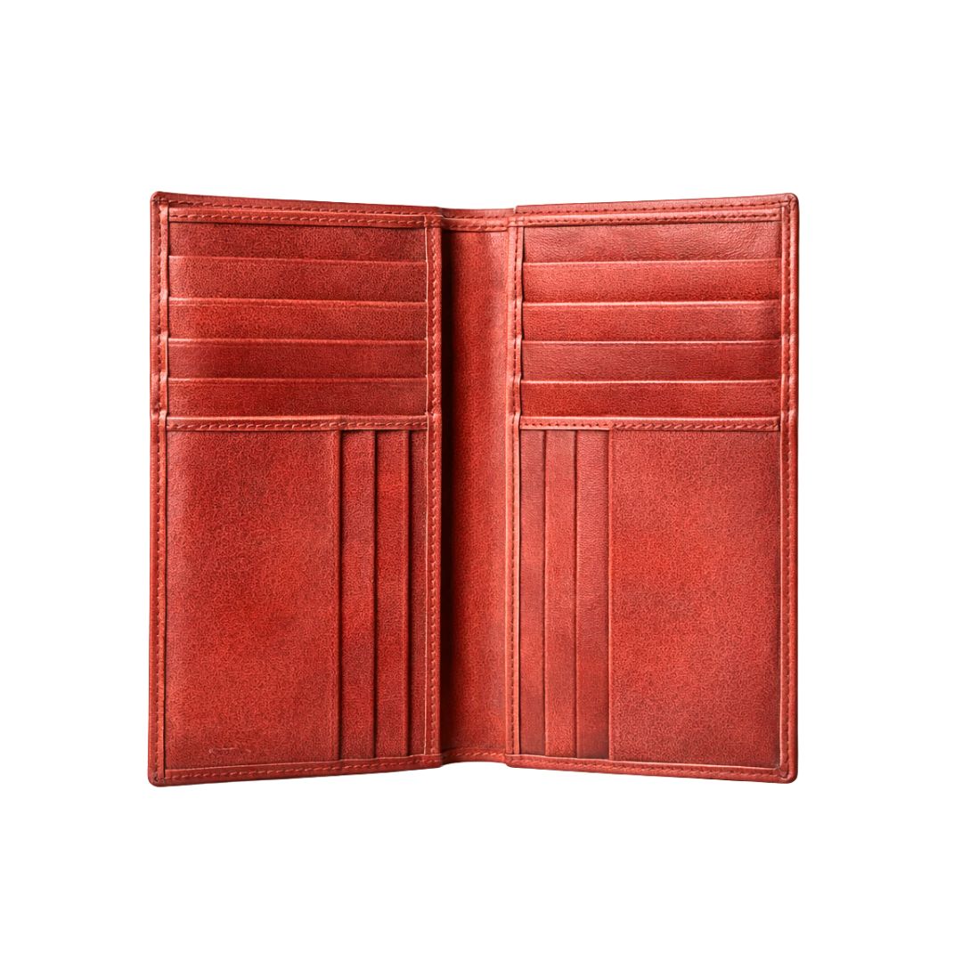 Featuring 14 card slots and 3 main compartments, it keeps your cards, IDs, and cash neatly organized while maintaining a slim profile. Its bifold design ensures easy access and a sophisticated appearance for any occasion.